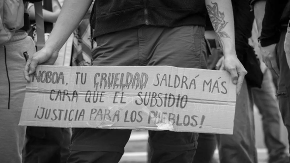 Los recursos nacionales se destinan al pago de la deuda externa, que beneficia a unos cuantos privilegiados del país, tenedores de los certificados o bonos de la deuda, y mientras  tanto los hospitales carecen de medicinas elementales, la educación pública ha sufrido fuertes recortes y el gobierno distribuye dádivas para aplacar la sed de justicia del pueblo.